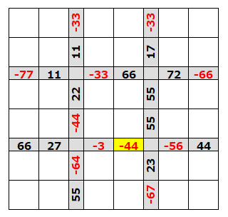 黄色のセルのヒント数字の符号が間違っていました。-44 が正しい差になります。