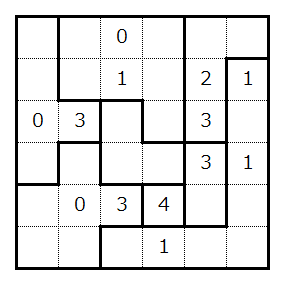 ・数字はそのマスが辺で接する別のブロックの種類を表しています。