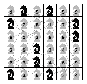 ・数字のマスは、その番号のナイトが通るマスであることを表しています。